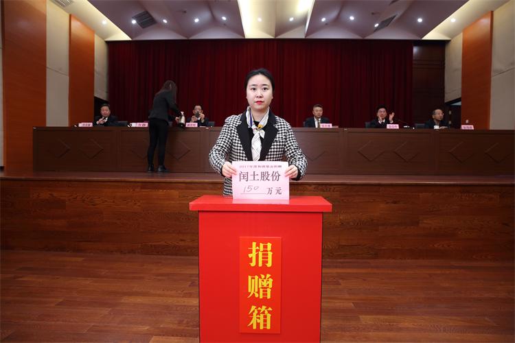 閏土股份現(xiàn)場(chǎng)認(rèn)捐杭州灣上虞經(jīng)濟(jì)技術(shù)開發(fā)區(qū)和諧基金150萬元