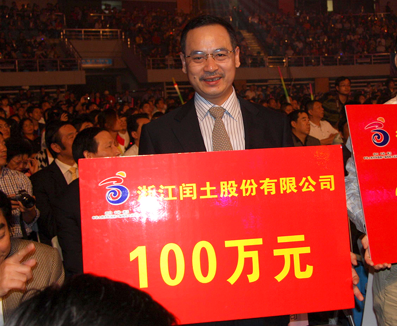 10月11日,阮加春總經(jīng)理在第八屆全國殘運會倒計時一周年大型愛心助殘晚會上接受中國殘聯(lián)主席張海迪(坐輪椅者)頒發(fā)“愛心企業(yè)”獎牌。浙江省省長呂祖善等領(lǐng)導(dǎo)出席了本次活動。