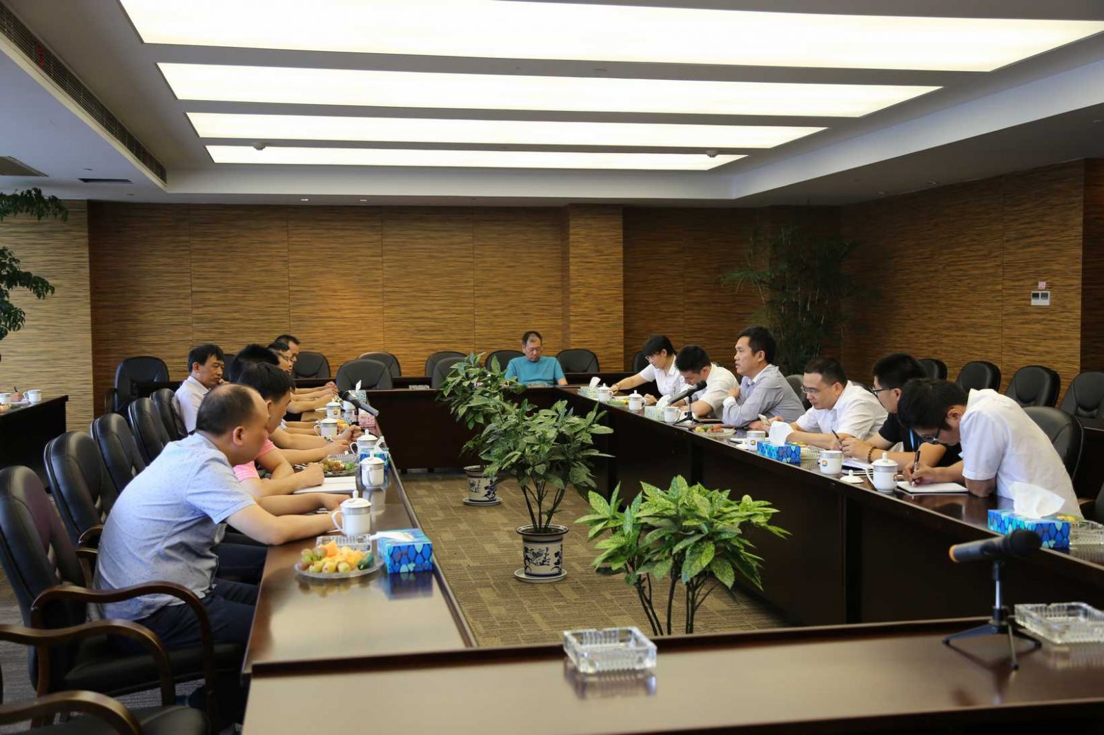 9月14日,杭州達美印染有限公司染料應用技術交流會人員到閏土生態工業園考察染料生產情況,公司總經理徐萬福等全程陪同;之后,考察團一行前往閏土大廈進行染料應用技術交流。公司技術副總趙國生、研究所常務副所長高立江、副所長顧偉娣等參加會議。雙方就染料知識進行了交流互動。